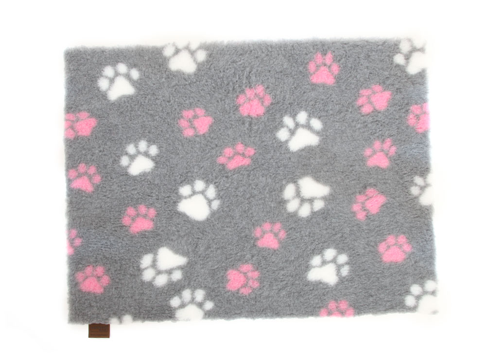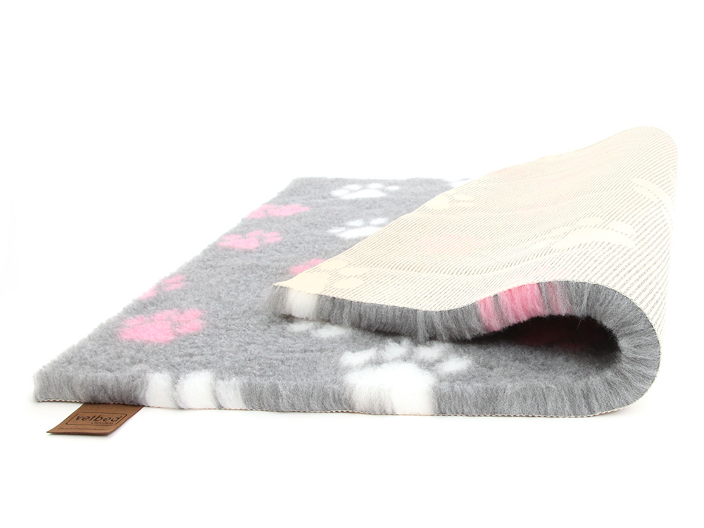 Über Original Vetbed Isobed SL grau mit pinken Pfoten 100 x 75 cm