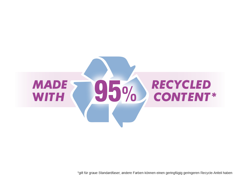 *Für graue Standardfaser, andere Farben können einen geringfügig geringeren Recycle-Anteil haben.